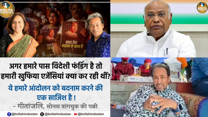 वांगचुक की गिरफ्तारी से पहले पुलिस ने उनके घऱ की तलाशी ली थी. वांगचुक की पत्नी गीतांजलि अंगमो ने उनके खिलाफ लगाए आरोपों को झूठा बताया. गीतांजलि अंगमो ने कहा कि सरकार वांगचुक की छवि को खराब करने के लिए उनके ऊपर आरोप लगाया कि सरकार उनके पति की छवि खराब करने के लिए झूठे आरोप लगा रही है. उनकी पत्नी ने कहा कि अगर हमारे पास विदेशी फंडिंग है तो हमारी खुफिया एजेंसियां क्या कर रही थीं? ये आंदोलन को बदनाम करने की एक साजिश है.